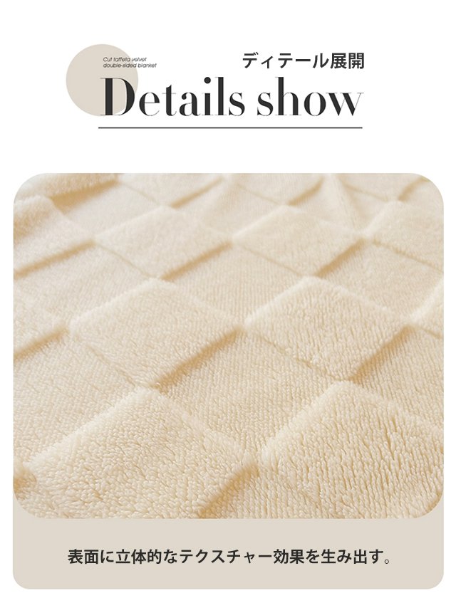 柔らかい素材感を示すフリース毛布の拡大写真